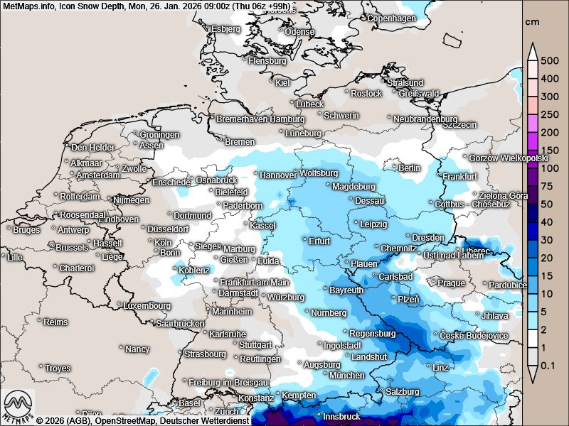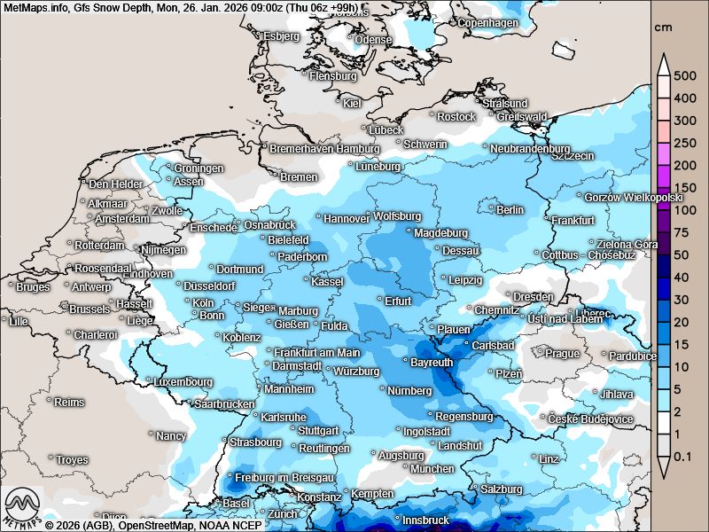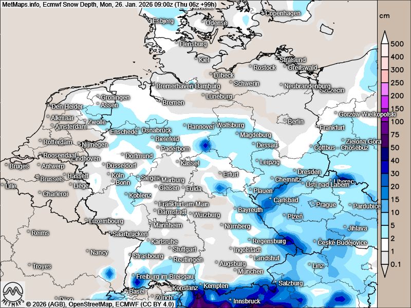 In der Prognose der Schneelage am Wochenende unterscheiden sich die Wettermodelle weiterhin deutlich.