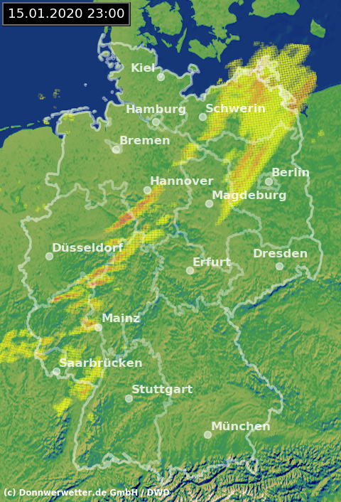 Radarbild von Mittwoch, 15.01.2020 um 23.00 Uhr
