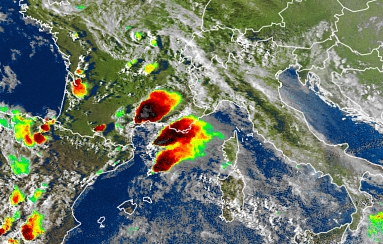 Die starken Gewitter (farblich gut zu sehen) über Südfrankreich führten zu Todesfällen. Eine Analyse folgt am Nachmittag