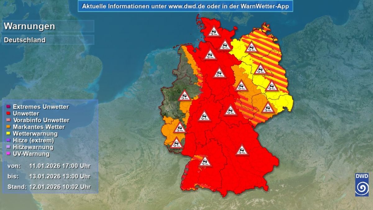 Während im Nordwesten und Westen die Unwetterwarnungen stellenweise schon wieder aufgehoben wurden, konzentriert sich die Gefahrenlage in den nächsten Stunden vor allem auf den Norden, Süden, die Landesmitte und später auch die Osthälfte Deutschlands.