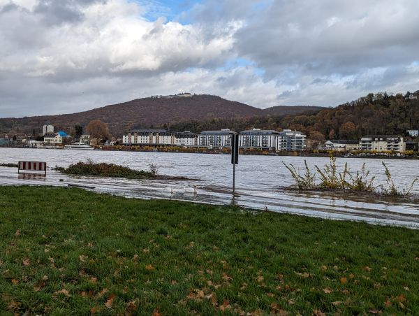 Die Fotos zeigen den Rhein bei Bonn am Samstag und Sonntag (18./19.11.2023) bei einem Pegel von knapp 660 cm am Sonntag.