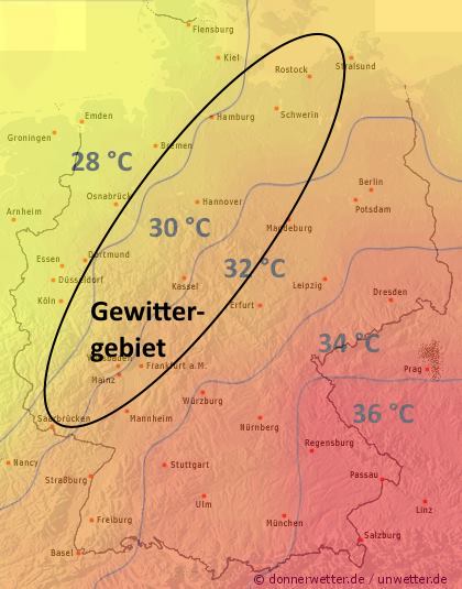 In unserer Karte ist das Hauptgewittergebiet am heutigen Donnerstag dargestellt.