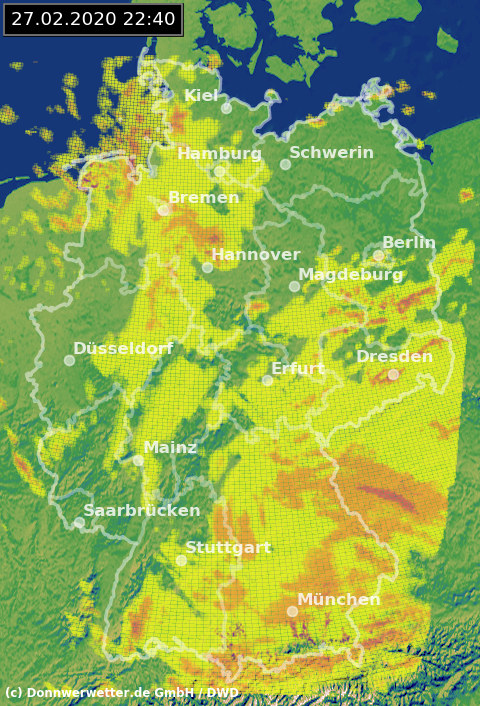 Radarbild von Donnerstag, 27.02.2020 um 22.40 Uhr