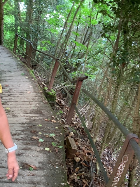 Denn auf diesem inoffiziellen (aber trotzdem ausgeschilderten) Wanderweg in der Schweiz, der wohl irgendwann in den letzten 40, 50 Jahren angelegt worden ist, bröckelt und rostet das Geländer nicht nur seit Jahrzehnten vor sich hin, viele Jahre Regen haben zudem die Fundamente unterspült und die Standfestigkeit beeinträchtigt.