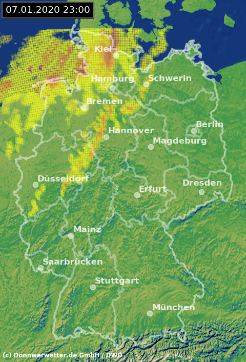 Radarbild von Dienstag, 07.01.2020 um 23.00 Uhr