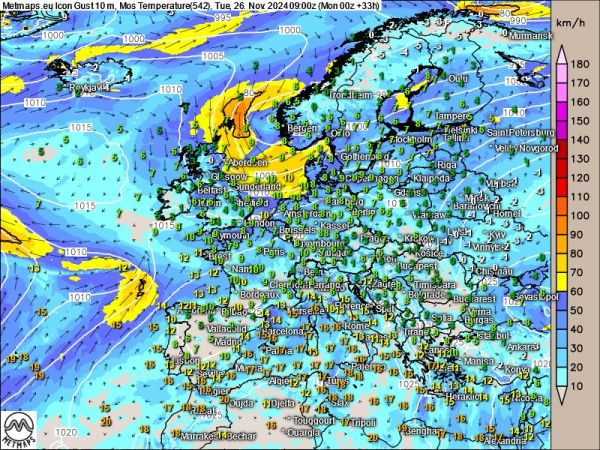 Bis mindestens Dienstag ist auf den Britischen Inseln noch mit Sturmböen zu rechnen. Besonders betroffen sind hier die Küstenregionen und Schottland.