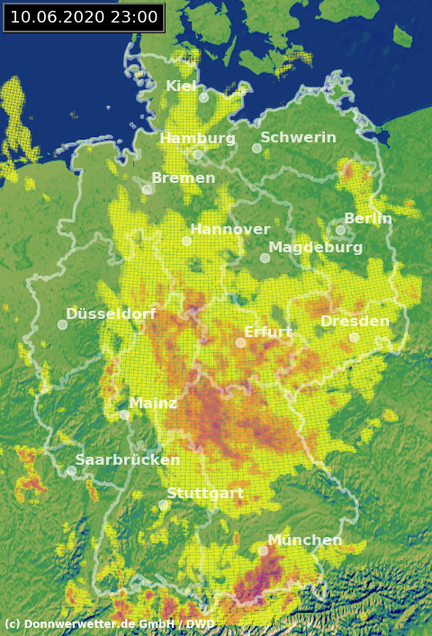 Radarbild von Mittwoch, 10.06.2020 um 23.00 Uhr