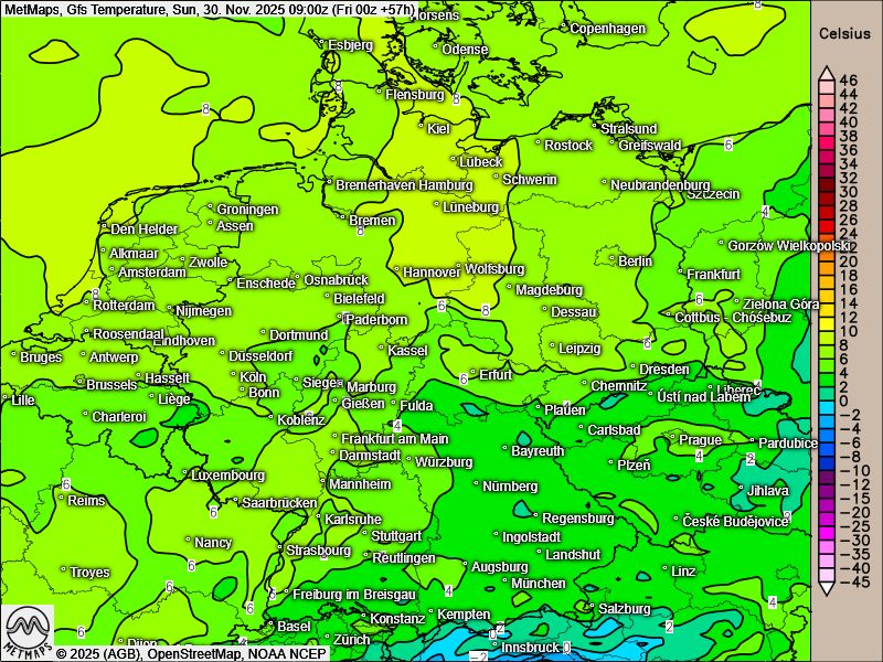 In die neue Woche und den Dezember geht es dann mit Westwindeinfluss und insgesamt zu milden Temperaturen.