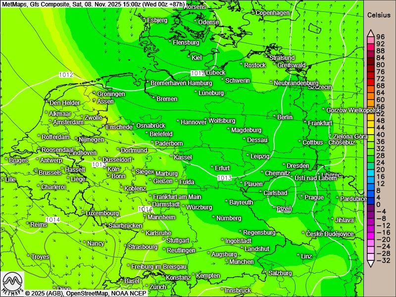 Wie gestern schon angedeutet, begleitet und die Hochdrucklage auch noch über die restliche Woche.